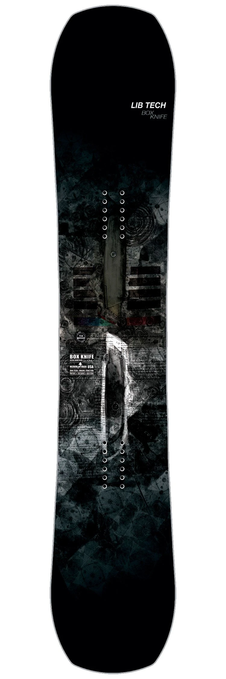 La Box Knife est dotée d’un cambre C3, un cambre classique très marqué, qui offre beaucoup de pop et d’accroche. Ce n’est pas pour autant que vous serez privés des bords de piste, avec un petit peu de technique, vous pourrez sans problème aller faire quelques slashs dans la petite poudreuse. Le noyau de bois renforcé de fibres de verre rajoute du répondant à la board et la rigidité des spatules demande plus de précision dans les manœuvres. Enfin, son shape twin-tip augmente sa jouabilité et votre créativité en freestyle et permet de rider en switch.